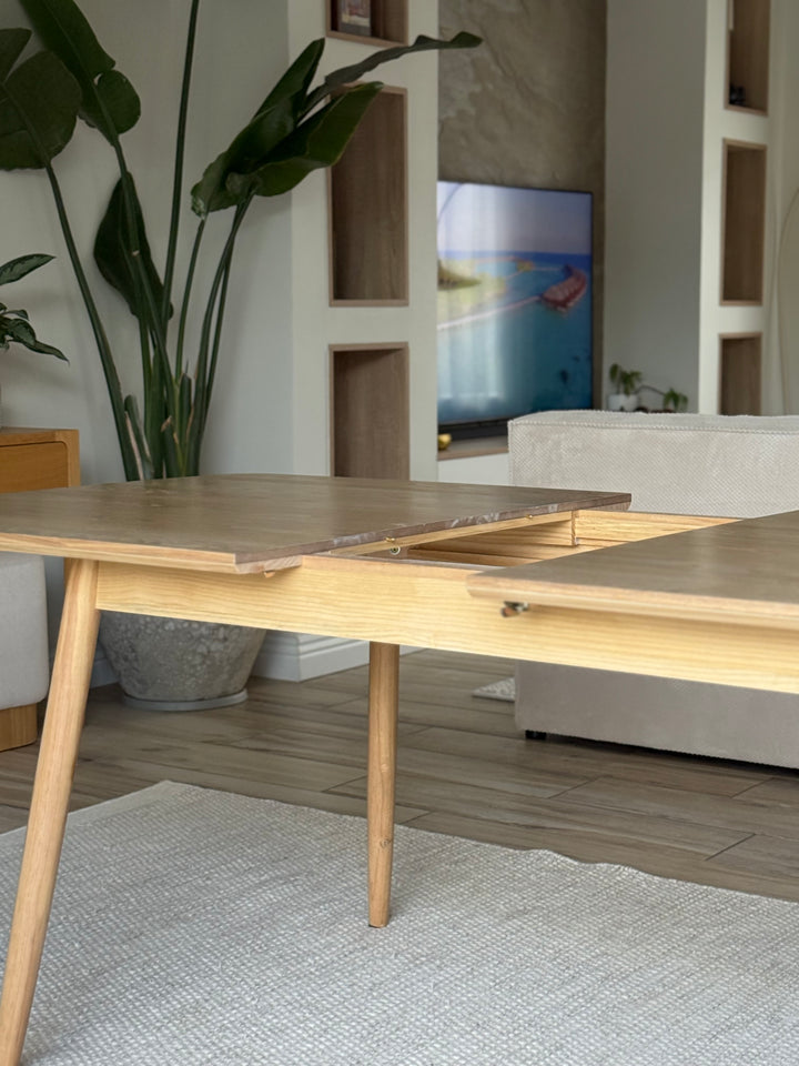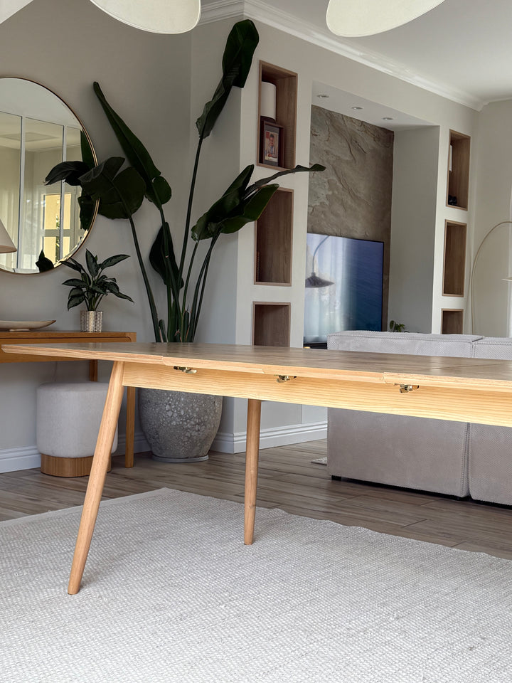 La table à manger CORTE est l'alliance parfaite du confort, de la durabilité et du design intemporel. Avec son style scandinave élégant, elle peut accueillir de 6 à 8 personnes grâce à ses rallonges extensibles. Fabriquée en pin certifié FSC, cette table garantit une solidité et une qualité irréprochable. Sa couleur marron apporte une touche chaleureuse à votre salle à manger, et sa facilité d'entretien en fait un meuble pratique au quotidien. La table Nordlys est le choix idéal pour des repas conviviaux en famille ou entre amis, tout en apportant une touche de modernité à votre intérieur.