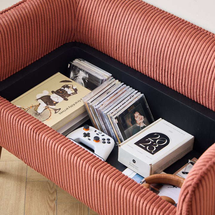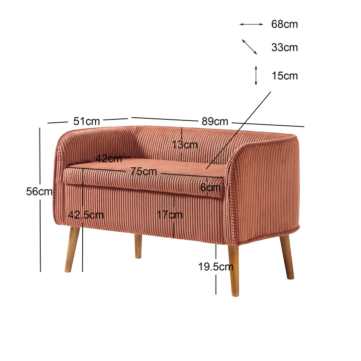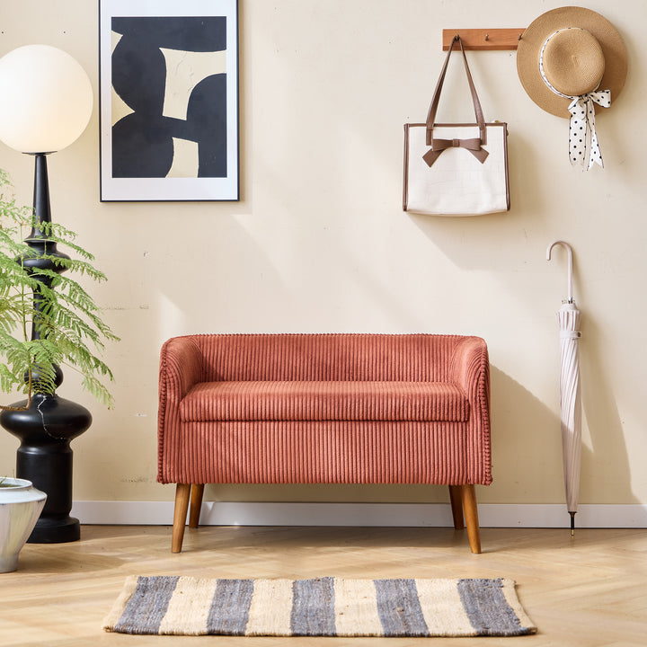 KIRKENES - Bank mit Stauraum aus Holz und terracottafarbenem Cordstoff