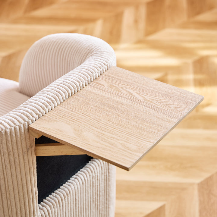 Le fauteuil de salon HALMSTAD avec son design moderne a tout ce qu'il faut pour embellir votre intérieur. Que ce soit dans votre chambre, votre bureau ou votre salon, il saura trouver sa place. Le large dossier offre un maintien de haute qualité. La garniture premium en bouclettes avec une mousse de densité supérieure offre un confort d'assise de haute qualité. Son espace de stockage ainsi que son pouf vous offrirons des solutions de rangement et d'assise supplementaires. Sa tablette integree au dossier en fait une piece extremement versatile. La base pivotante en métal finition époxy noire assurent stabilité et ergonomie pour une utilisation longue durée. Le fauteuil est facile à entretenir, un coup de chiffon humide suffit pour le nettoyer.