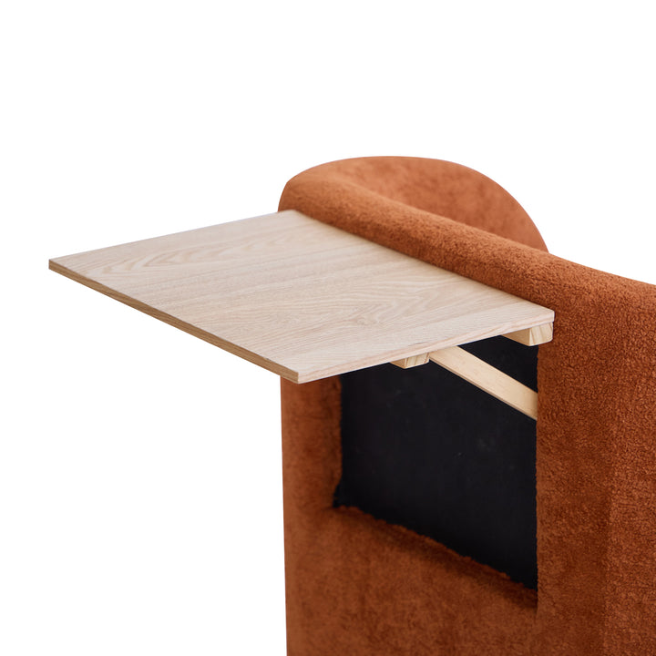 Le fauteuil de salon HALMSTAD avec son design moderne a tout ce qu'il faut pour embellir votre intérieur. Que ce soit dans votre chambre, votre bureau ou votre salon, il saura trouver sa place. Le large dossier offre un maintien de haute qualité. La garniture premium en bouclettes avec une mousse de densité supérieure offre un confort d'assise de haute qualité. Son espace de stockage ainsi que son pouf vous offrirons des solutions de rangement et d'assise supplémentaires. Sa tablette integrée au dossier en fait une piece extremement versatile. La base pivotante en métal finition époxy noire assurent stabilité et ergonomie pour une utilisation longue durée. Le fauteuil est facile à entretenir, un coup de chiffon humide suffit pour le nettoyer.
