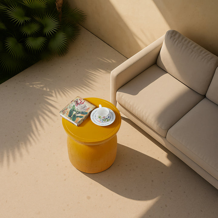 HJORRING - Table d'appoint bout de canapé intérieur extérieur en magnesite jaune