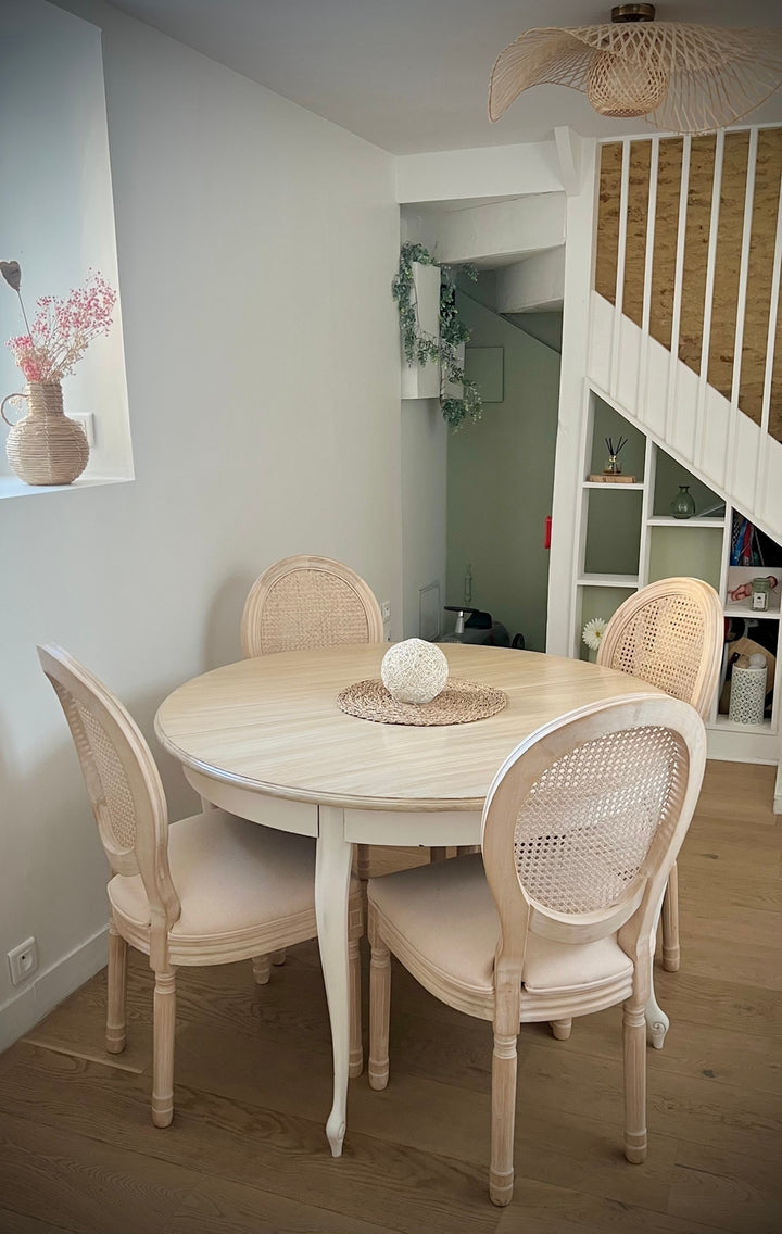 ✔️ Confort : Son assise tissu garnie avec de la mousse haute résilience ainsi que son dossier en alliage bois et cannage vous assureront un confort optimal .
