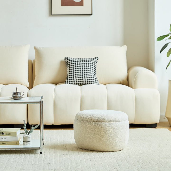 Le pouf/table basse VASA est l'accessoire parfait pour ajouter une touche de style scandinave à votre intérieur. Avec une capacité de support maximale de 120 kg, ce meuble allie confort et durabilité. Sa couleur blanche et ses bouclettes en font un élément essentiel pour une décoration moderne et épurée. Fabriqué en bois de qualité, ce pouf de salon est certifié Oeko-Tex, garantissant un produit respectueux de l'environnement. Son design intemporel s'intègrera parfaitement dans tous les types de décor. En plus d'être un meuble élégant, ce pouf offre également un espace de rangement et une polyvalence qui le rendent tres pratique. Facile à entretenir, il est l'allié parfait pour un salon accueillant et chaleureux.