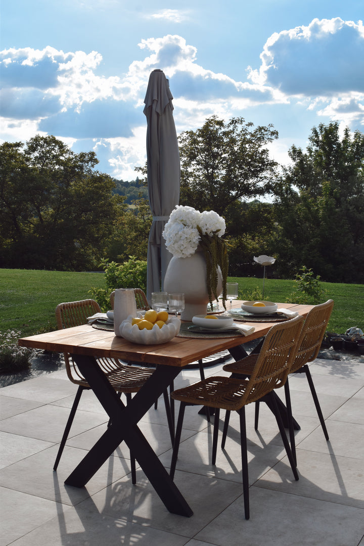 BANGKOK - Lot de 4 chaises en métal et rotin