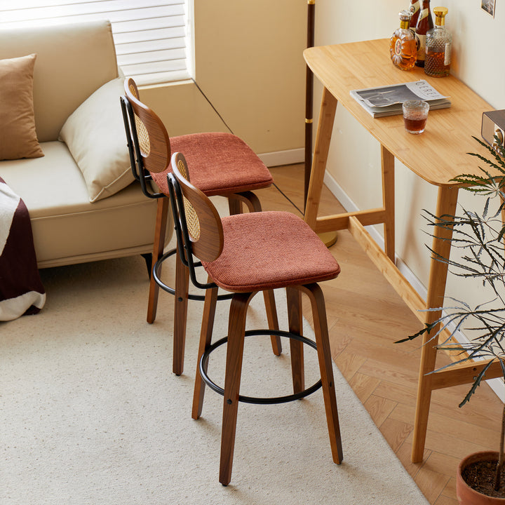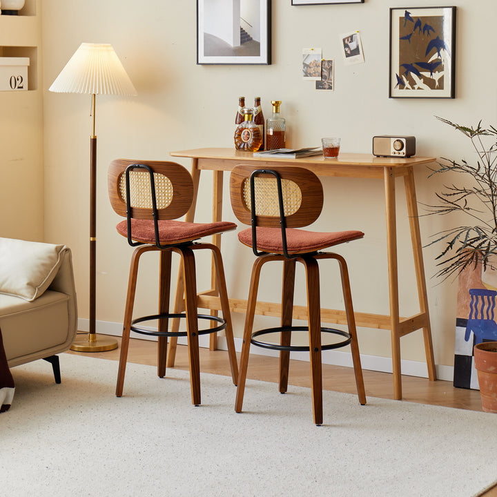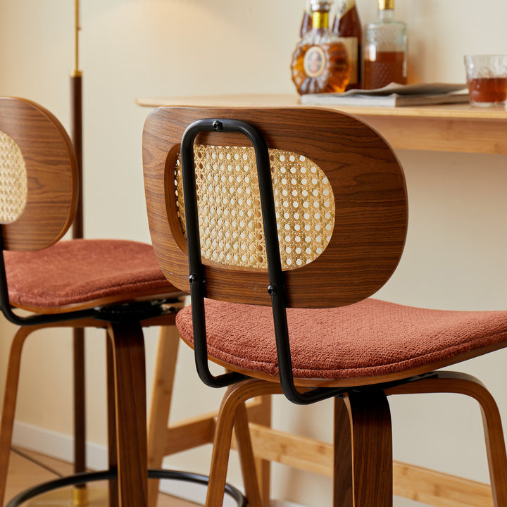 Le lot de 2 tabourets de bar en bois et cannage ALESUND allie parfaitement confort, durabilité et design intemporel dans un style scandinave épuré. Ces tabourets terracottas en frêne et tissu ajouteront une touche élégante à votre espace. Le bois certifié FSC garantit une fabrication durable et respectueuse de l'environnement, tandis que le cannage et le tissu apportent une touche design aux tabourets. Parfaits pour compléter votre cuisine ou bar, ces tabourets apporteront modernité et chaleur à votre intérieur. Profitez de ces tabourets de bar de haute qualité pour des moments conviviaux entre amis ou en famille, tout en ajoutant une note de sophistication à votre décor. Ce produit contient du bois, une matière naturelle dont la teinte peut varier légèrement selon la luminosité.