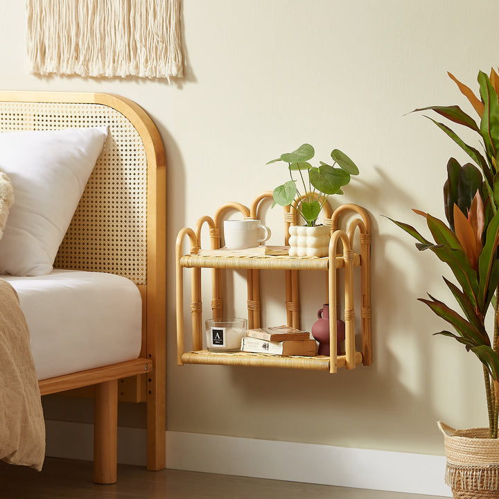 Decouvrez l'étagère de rangement murale à 2 niveaux en rotin naturel BELEM qui s'inscrit parfaitement dans un style scandinave. Sa couleur marron et sa finition en bois laqué ajoutent une touche d'élégance à tout espace de vie. Fabriquée en rotin, une matière naturelle réputée pour sa robustesse, cette étagère bénéficie d'une certification de qualité. Son design intemporel en fait un accessoire de décoration parfait pour tout intérieur. Facile à entretenir, cette étagère allie praticité et esthétisme, idéale pour organiser et mettre en valeur vos objets de décoration, livres ou plantes. Optez pour l'étagère BELEM pour un rangement fonctionnel et stylé dans votre maison.