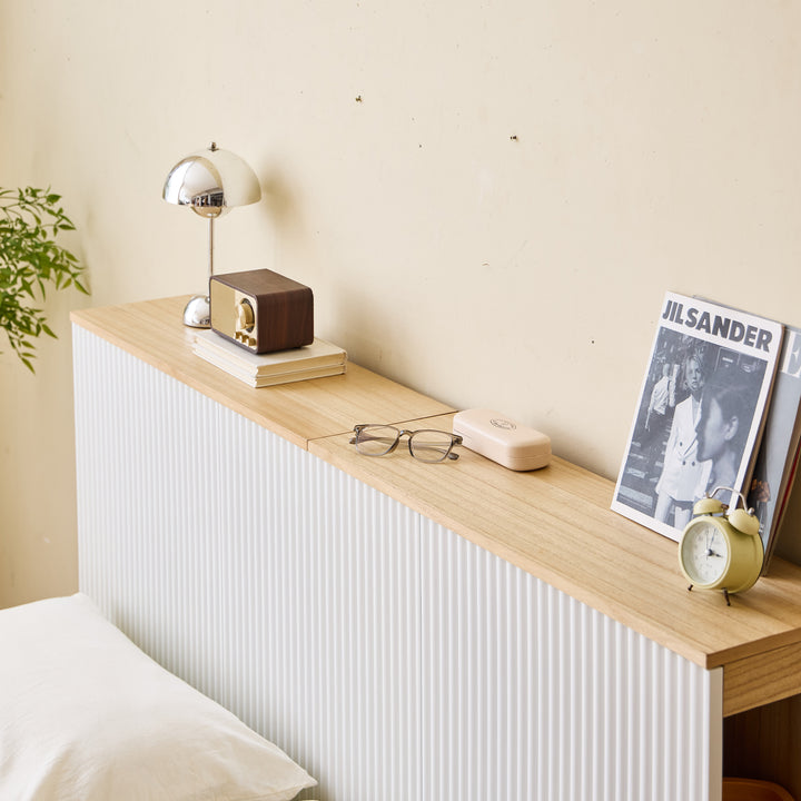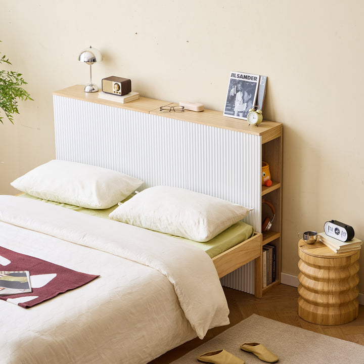 ESLOV - Tête de lit 160 en bois avec rangements blanc