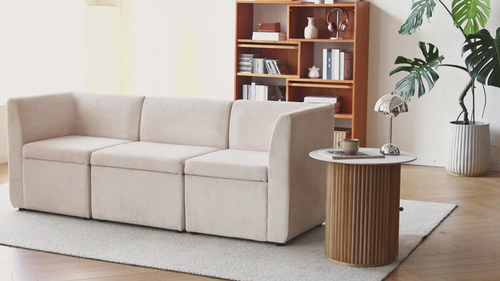 VARDE - Canapé modulable 2 personnes en velours côtelé beige
